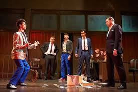 First things first. If profanities bother you, then perhaps Mojo isn’t the play for you to go and see. I could say that there is some swearing, but more accurate would be that there are some normal words, connected into sentences by quite a lot of very bad words. Secondly, you get to see Colin Morgan in his pants (that’s underpants, just to be clear). For quite a long time. Now, there has been many a daydreamed hour about witnessing that moment, but when faced with it from 3 rows off the stage and when it features some grubby fifties style Y-fronts, it’s rather off-putting.